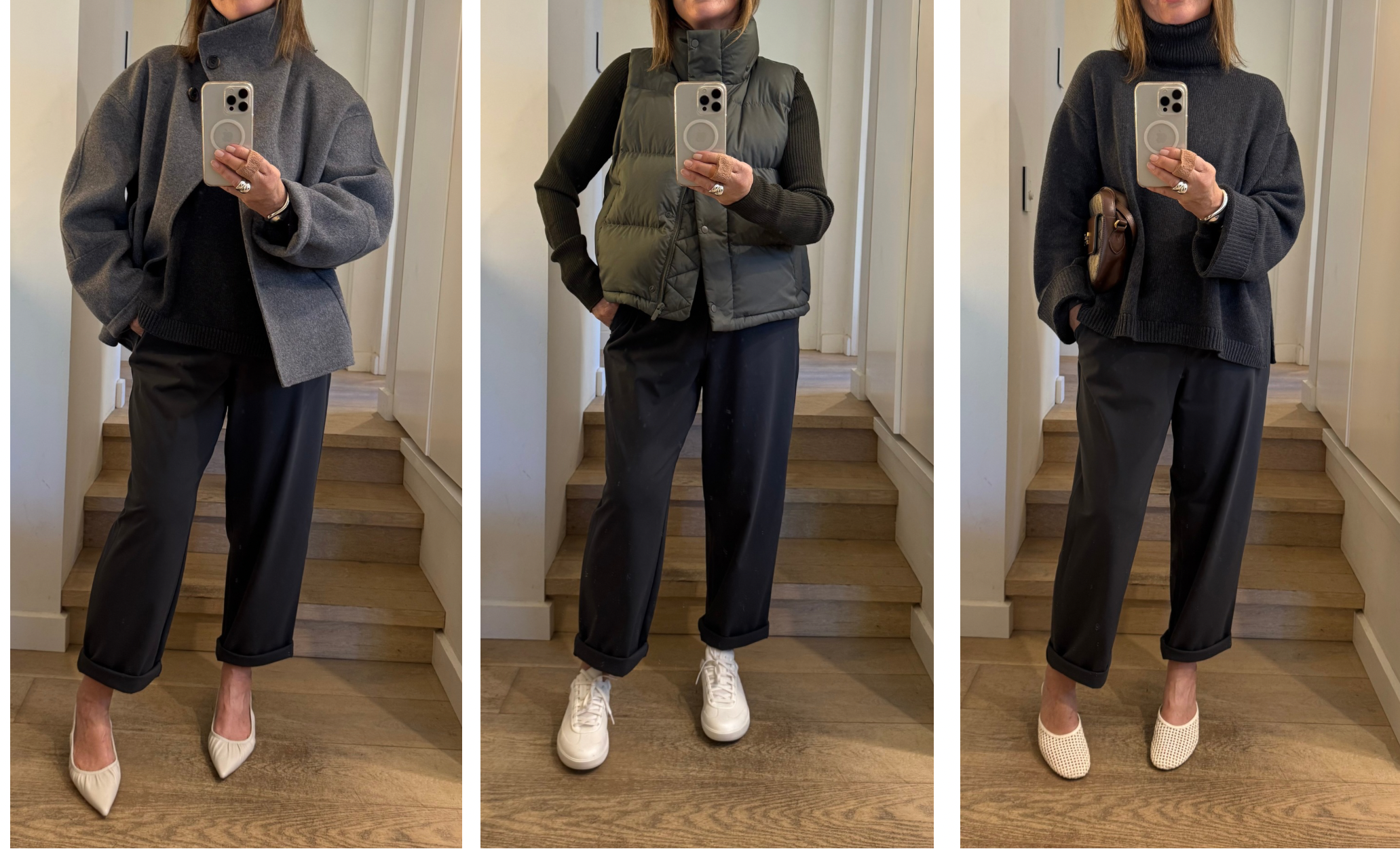 Which means they’re the perfect cut with big sweaters, slouchy jackets and a chic sleeveless vest. When you want a neater silhouette on the bottom to deal with the drama on the top !