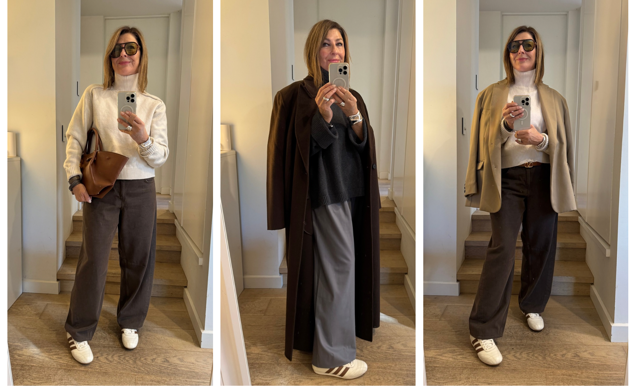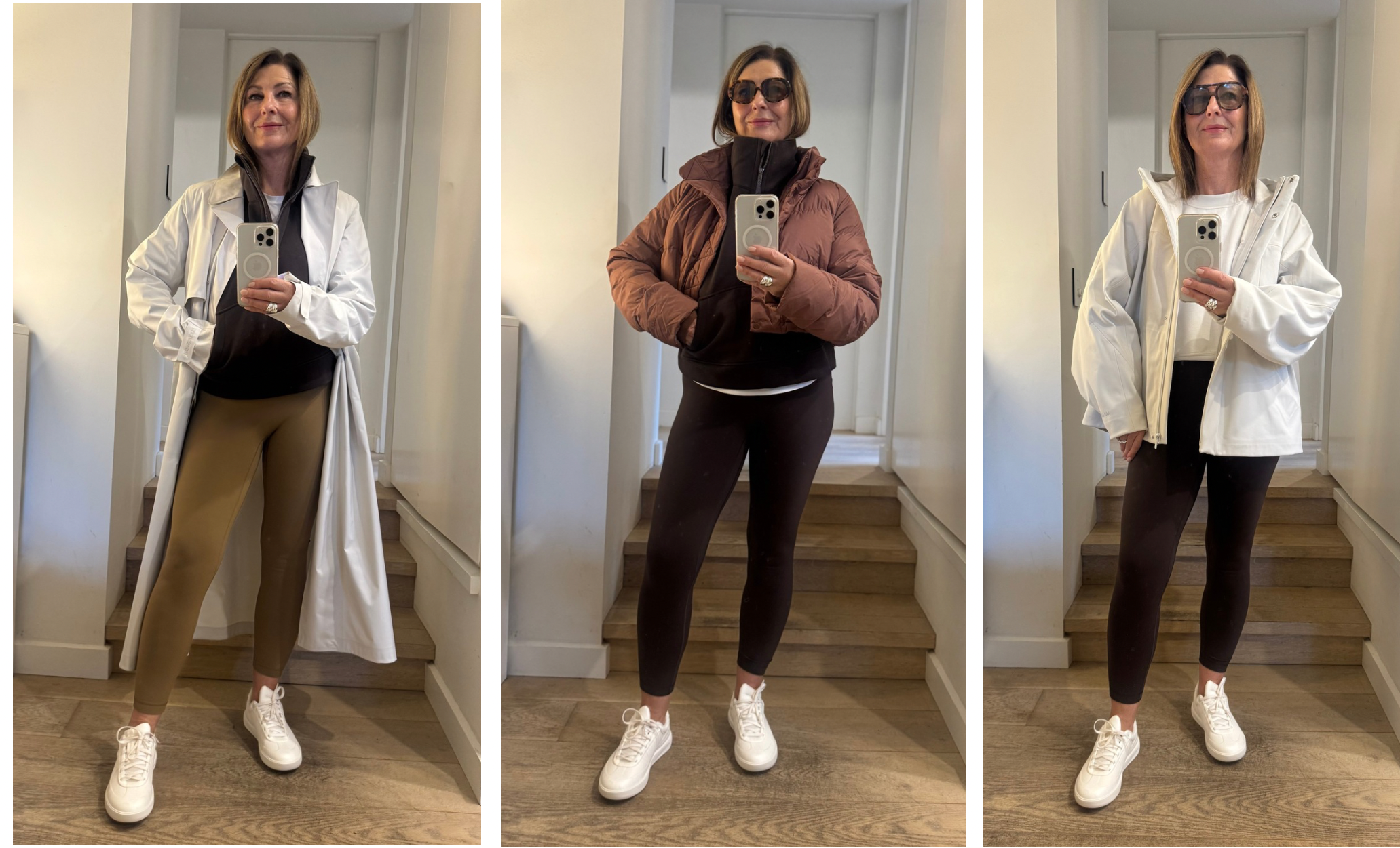 These adidas with the brown stripe, the adidas brown suede from last year, just nabbed these New Balance from Stylerunner and adore them , comfortable and chic. Love these chunkier New Balance for walking . And of course the lululemon white sneakers for actual exercise.  BTW I have sneakers I bought years ago from Zara : some of the most comfortable I’ve ever worn see here.