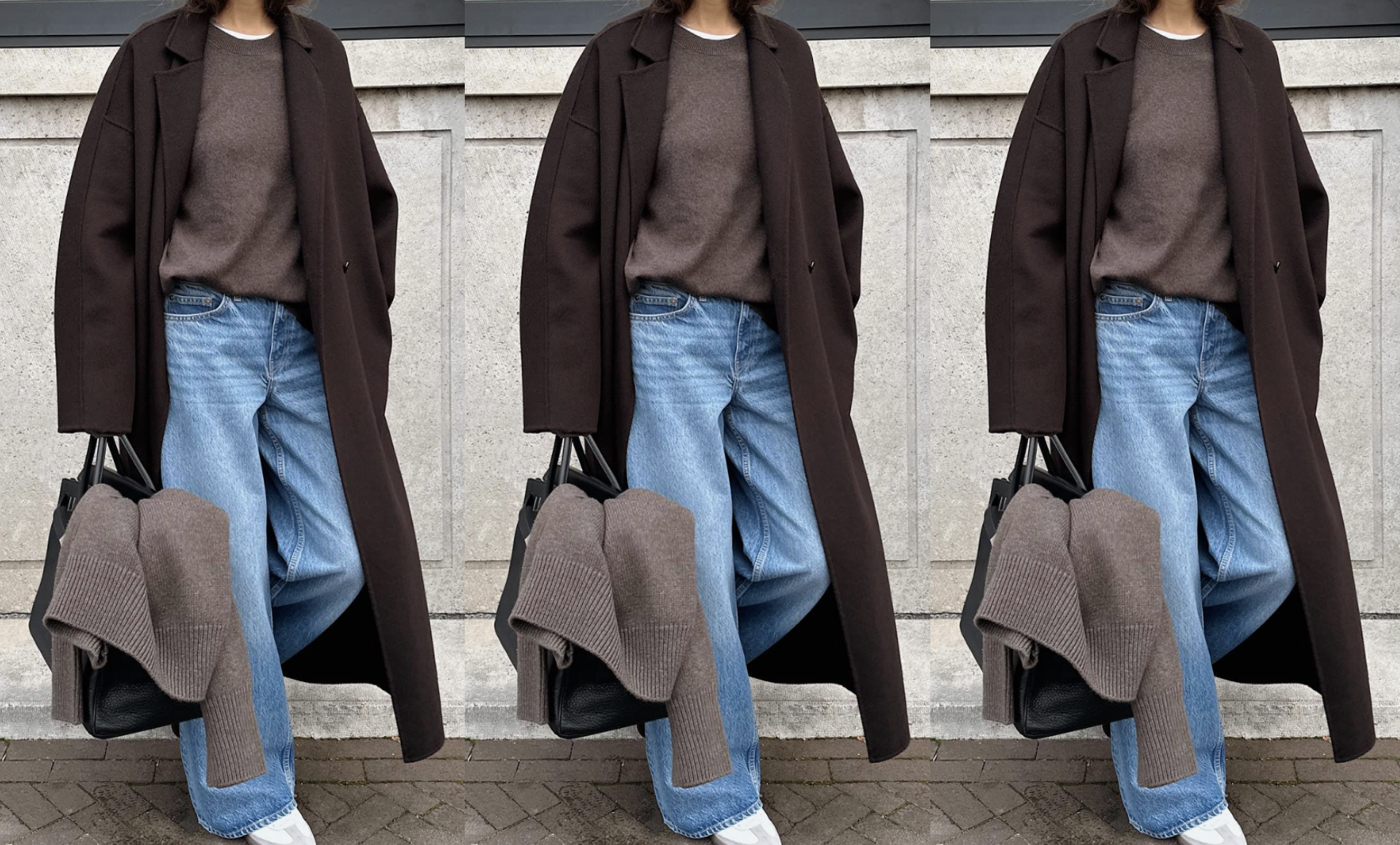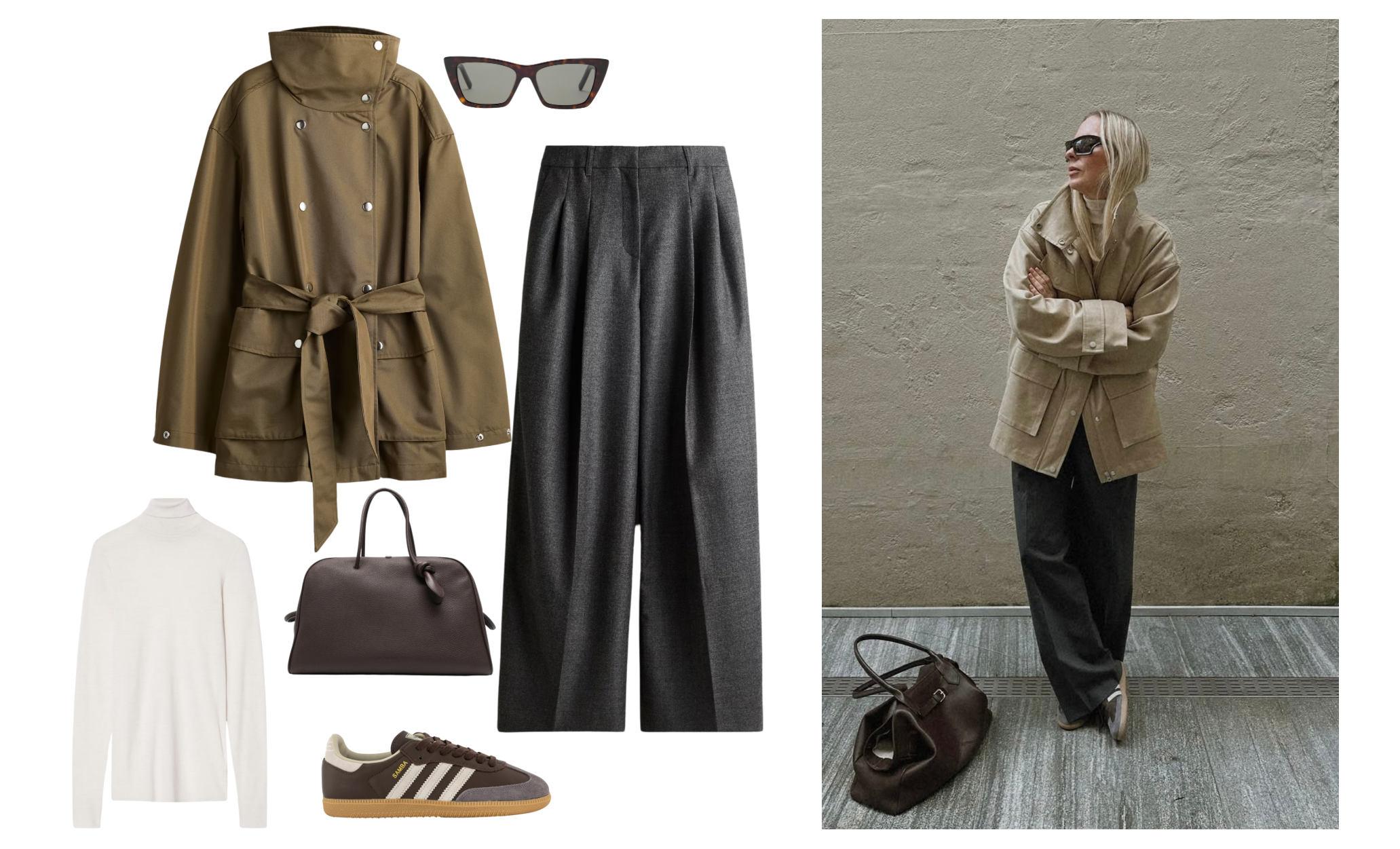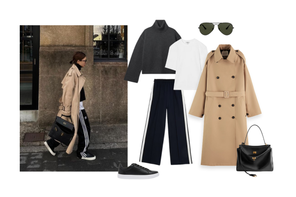 • Throw on a knit, pleather pants and a long, long trench plus sneakers = cool chic.