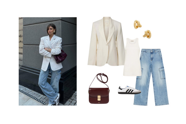 • A slouchy trousers suit looks great with sneakers.