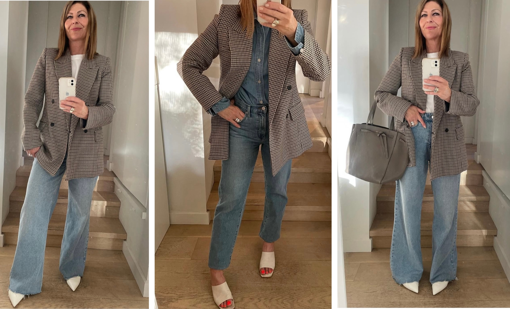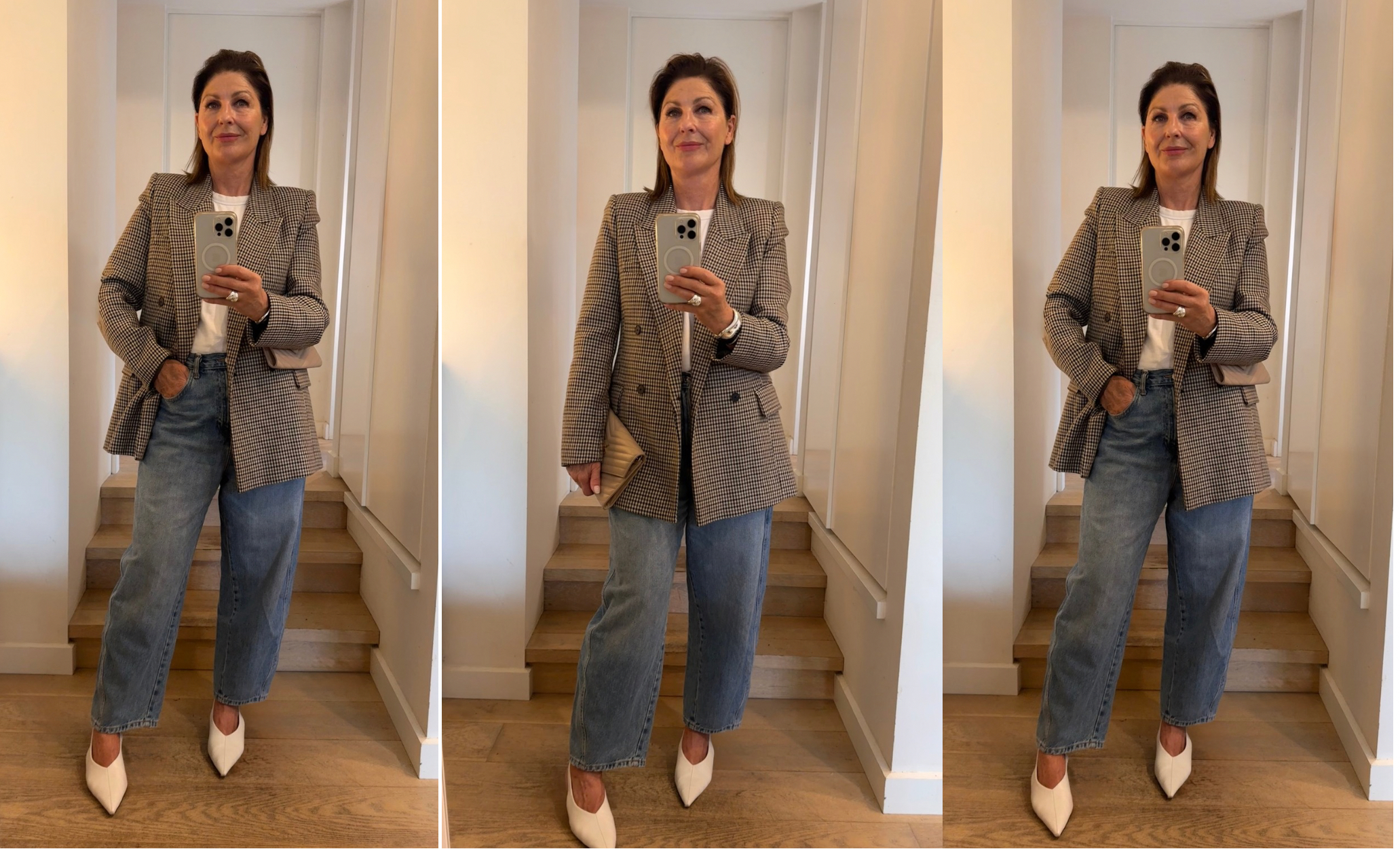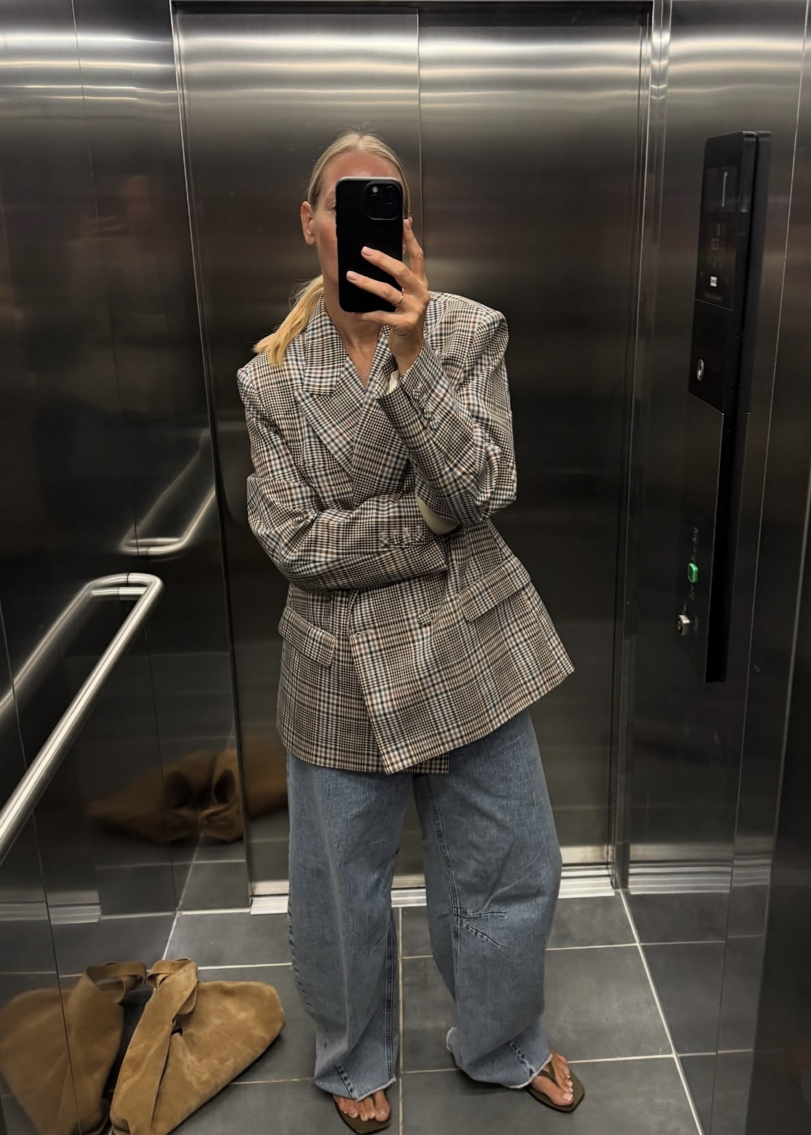 Steal my style: A chic tailored check blazer & baggy jeans.