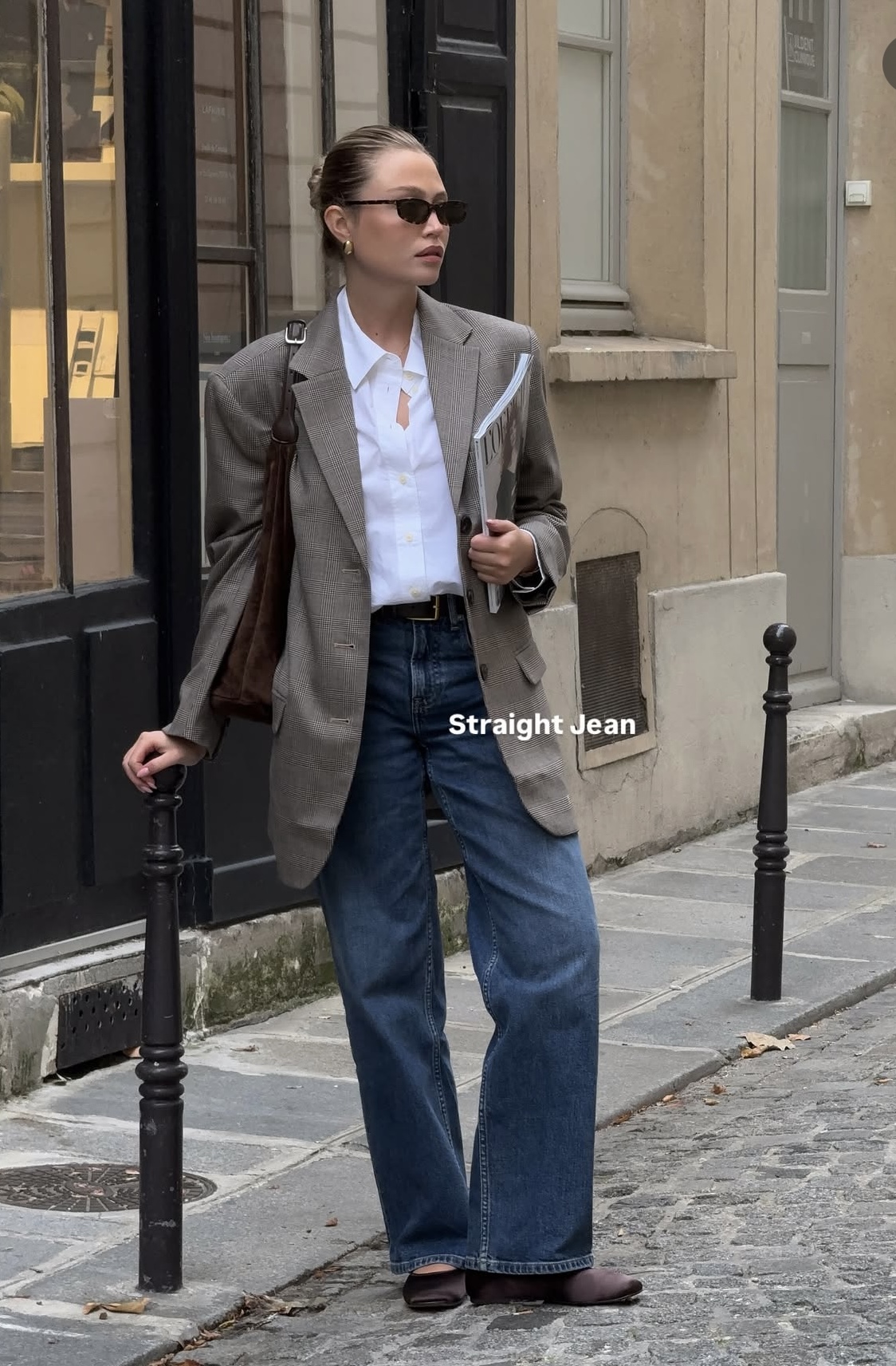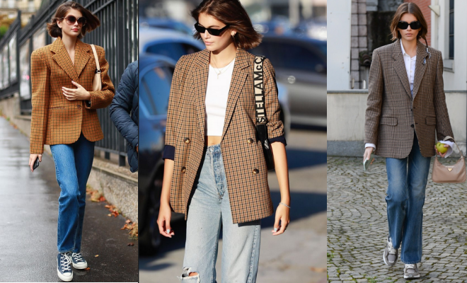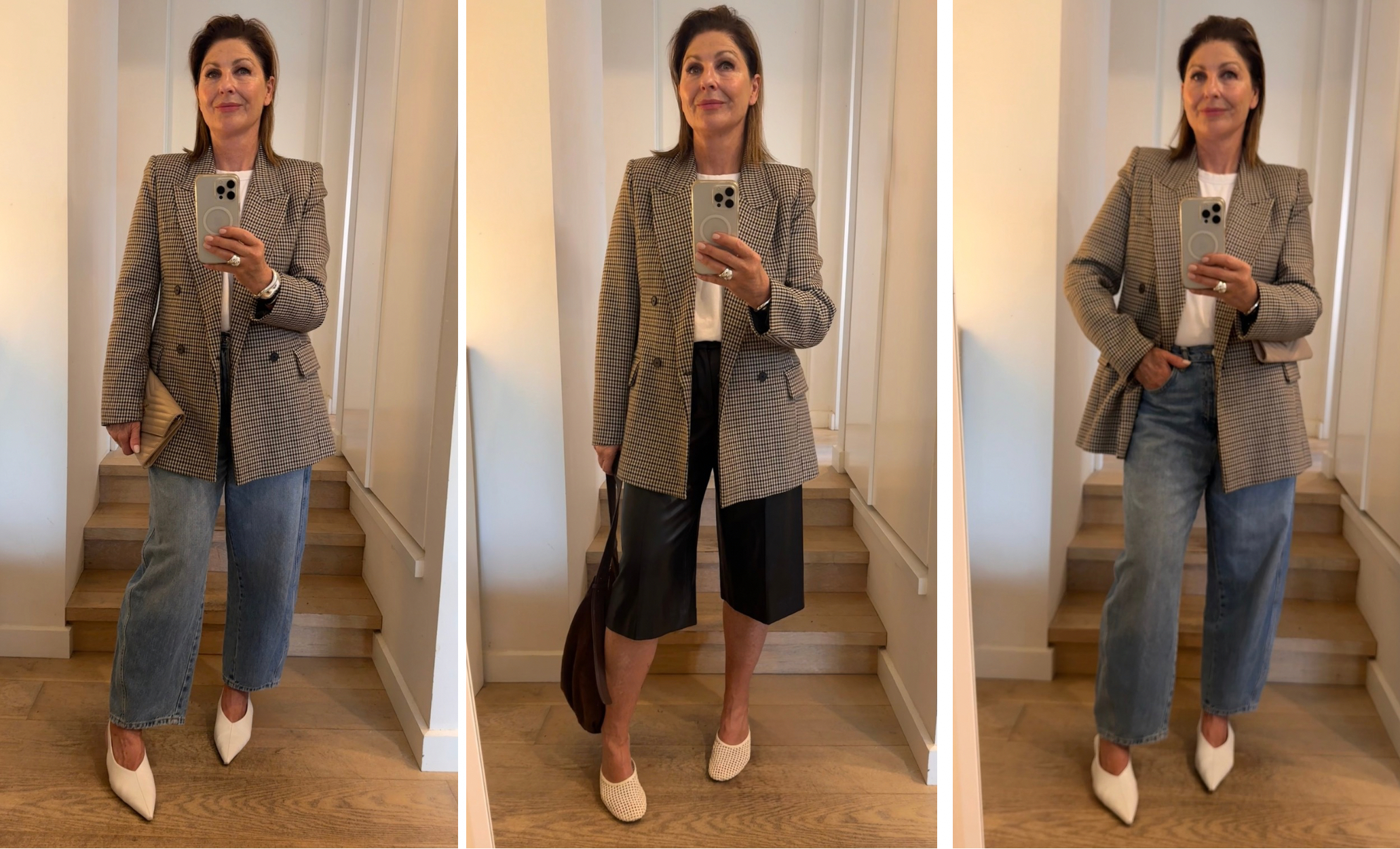 Steal my style: A chic tailored check blazer & baggy jeans.