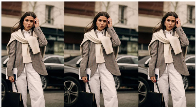 A heck blazer over all white such as a white Tee and white jeans: so chic.