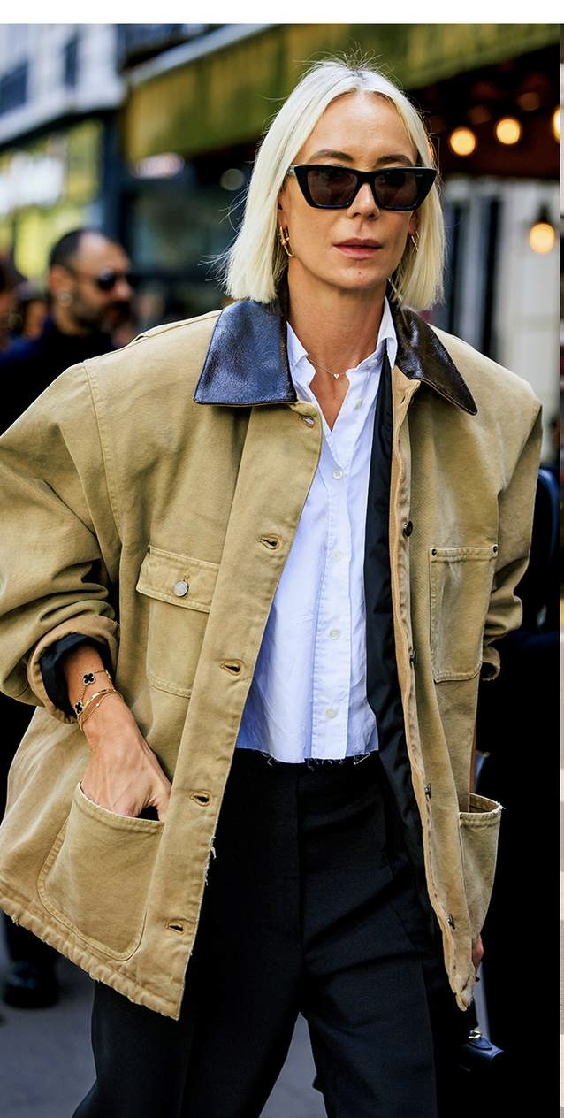 Perfect to wear now when it’s chilly but right into autumn over a white tee. A barn jacket is still so right for this coming winter. Did you get one last season ? They should be loose and slouchy. Great for casual but also right with heels and a pencil skirt like this. Love the way it’s styled below over a blue shirt. This one is on sale at Arket and I adore it. The funnel neck ! The Length, the A line cut, the colour. However a short barn jacket is chic too. It’s your casual weekend jacket that you wear instead of a blazer. It’s so cool. Buy here and here .