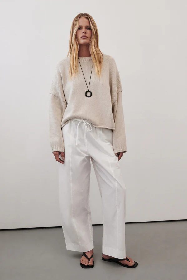 In summer, on casual weekends when it’s a bit chilly you really don’t want to wear a blazer or jacket , it is just too formal don’t you think ? Which is why you need a slouchy knit to just toss on over your white tee or tank. Or wear it by itself. Love this knit from DISSH. Not too long to tuck in, but the right length to wear hanging out. Great neckline, drop slouchy shoulders and a good interesting hem. Love with white jeans or any slouchy neutral pants or denim. Even with a white /blue denim skirt. Laidback Chic. BUY here.