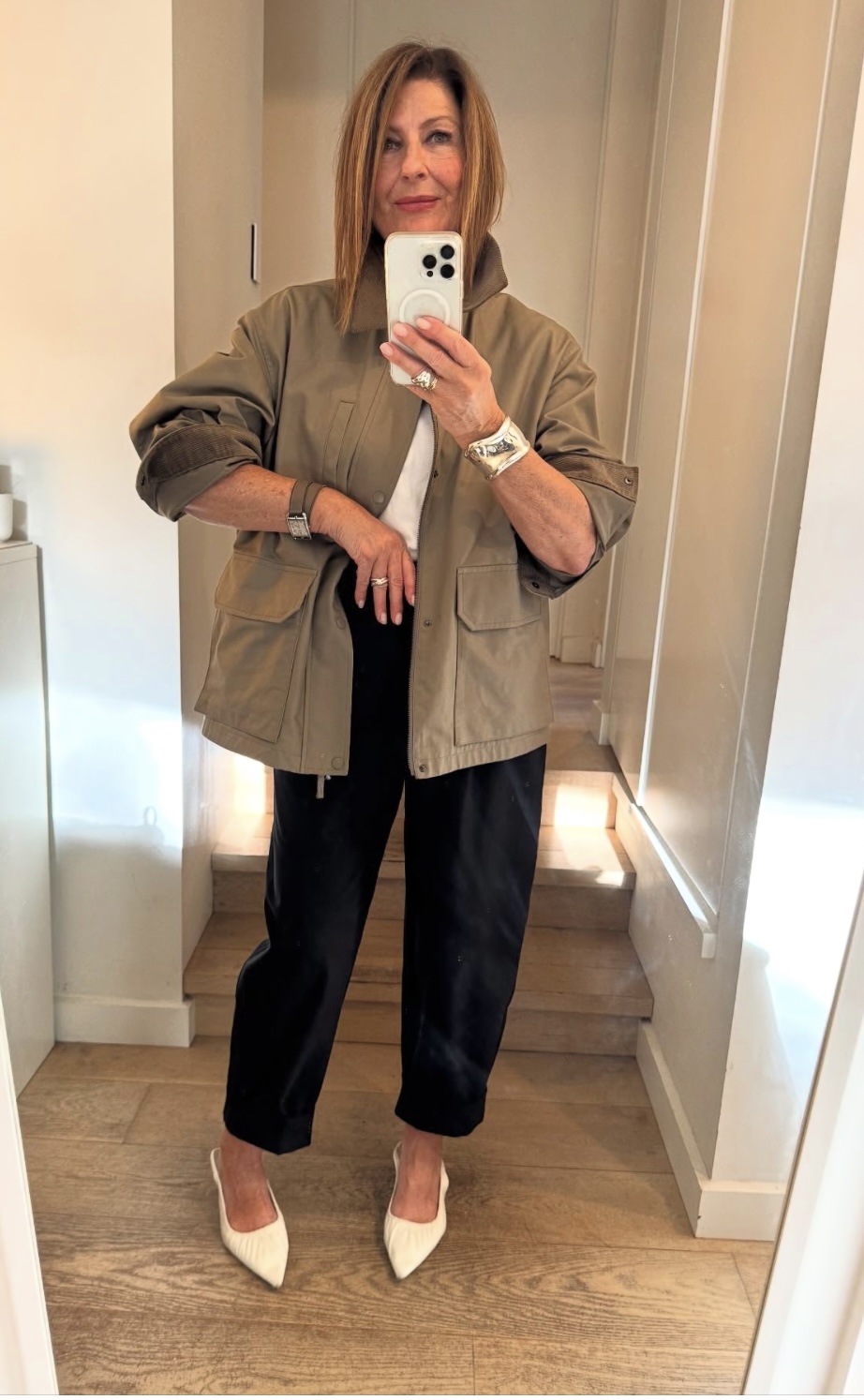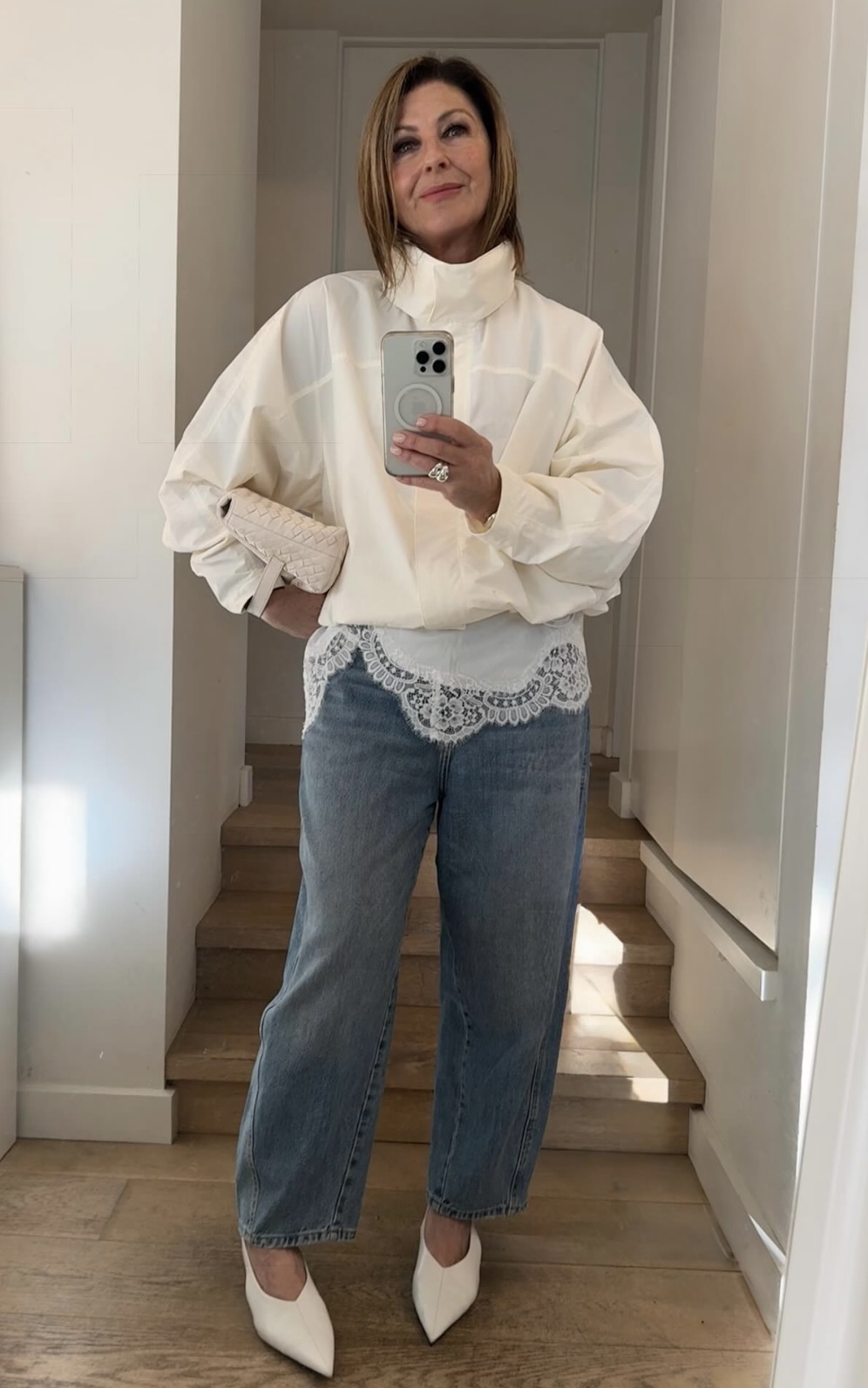One of the FiFi philosophies? Shoes maketh the outfit. White shoes are instant wardrobe updaters! This not a drill.Pull on white pointy heels or any flats and immediately you look fashiony. Chic. Edgy. Those old jeans from a few years ago? Pull on white pointy flats. That midi skirt that needs a refresh? Try white mules. A boring black dress? White strappy heels take it to another level. They lighten the look, add a fashion edge you didn’t know you needed. Try this at home with any old average lewks and watch as white shoes work their cool girl magic.